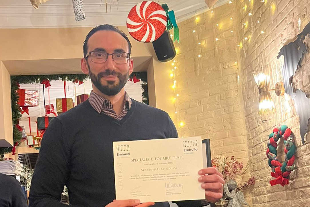 Voor Moustapha was het een bijzonder waardevolle ervaring. Hij vertelt hoe vooral de diepgaande technische benadering hem heeft aangesproken. “Die heeft me geholpen om een bredere, meer gestructureerde en prestatiegerichte visie te ontwikkelen,” zegt hij. “Ik houd nu nog meer rekening met de langetermijnimpact van technische keuzes. Dat verandert echt hoe je naar een dak kijkt.”