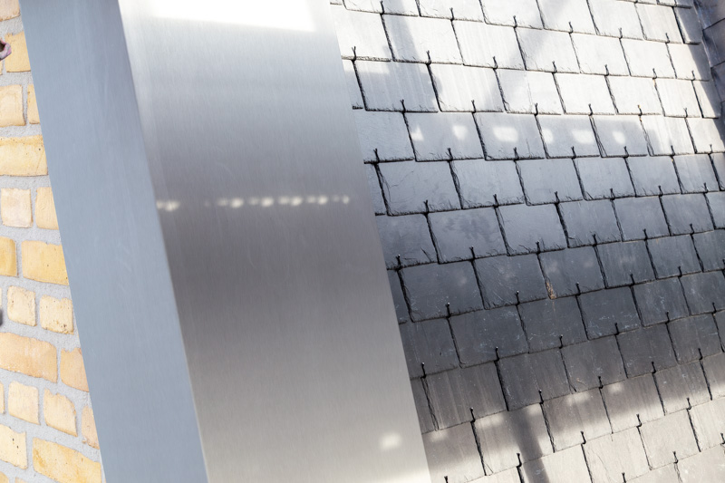 De zinken dakkapellen, uitgevoerd in Quartz met patinalaag, zijn geplaatst in staande naad om optimaal bestand te zijn tegen de hoge windbelasting aan de kust. De keuze voor deze afwerking werd ingegeven door het agressieve zeeklimaat, dat een grote impact heeft op materiaalveroudering.